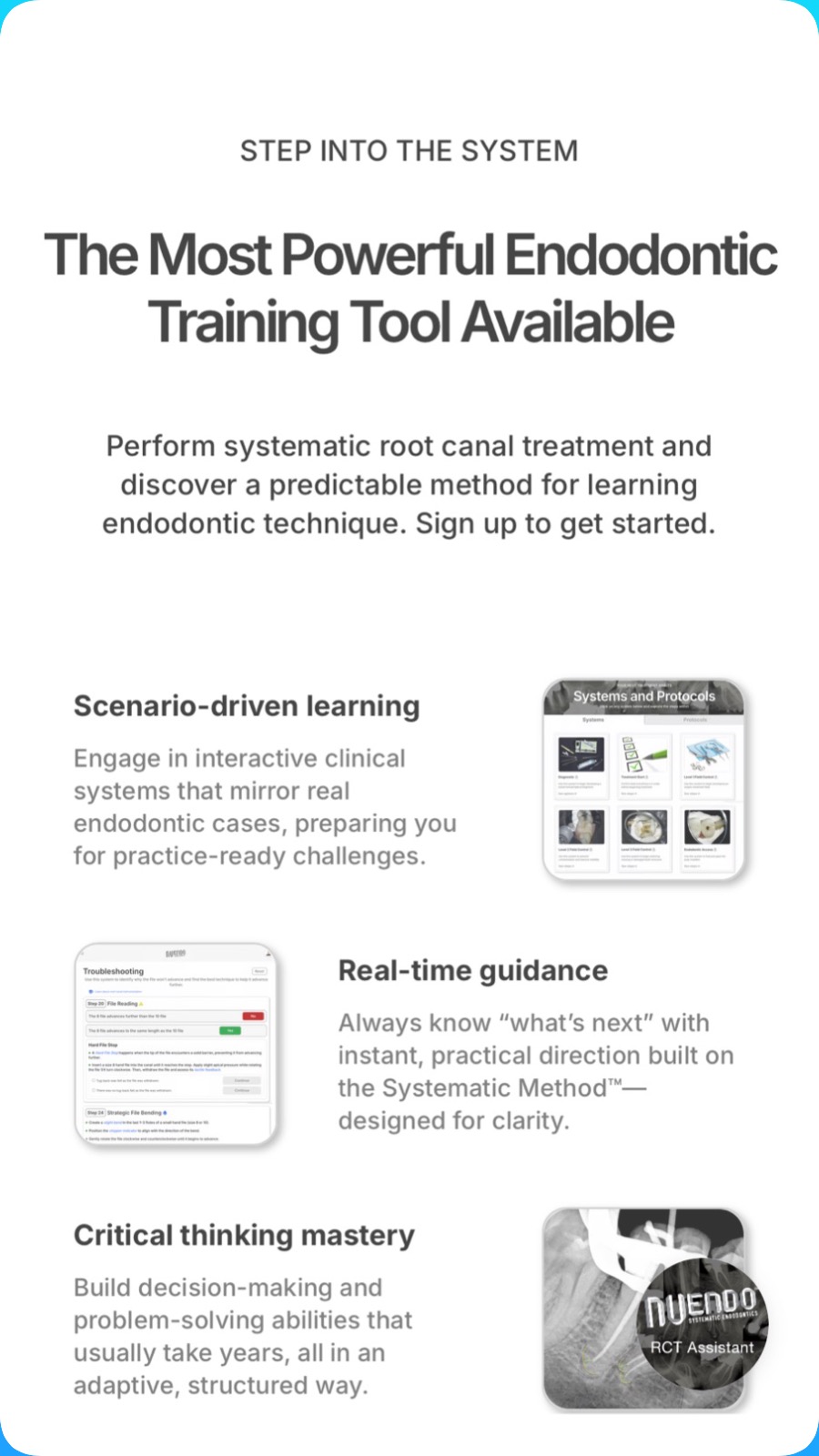 The most complete endodontic workflow and learning system—scenario-based training plus a precise, step-by-step RCT guide for predictable results.