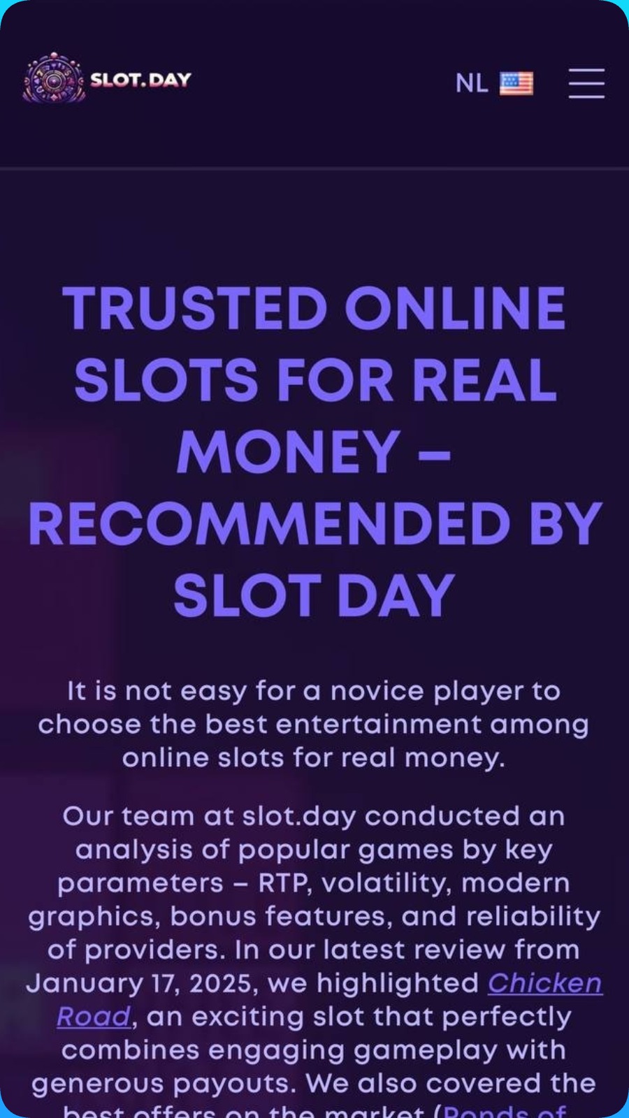 Slot.day is your pocket expert for online slots and casinos! We created this guide so you can play with confidence, choosing only the best and fairest games. Explore reviews of 1600+ slots where we analyze every machine‘s RTP, volatility, graphics, and bonus features. Our casino ratings guide you to reliable platforms with the most generous welcome bonuses and free spins, while our smart search lets you filter games by dozens of themes, popular providers, or unique mechanics like Megaways and Bonus Buy. Stop risking blindly. Download Slot.day and make informed decisions for big wins!